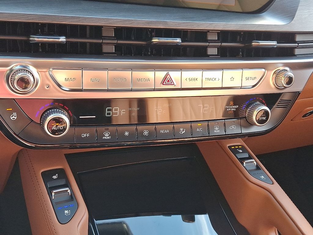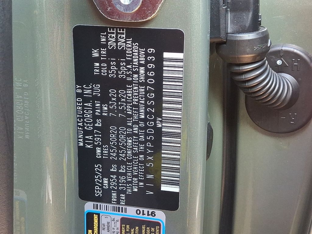10 Speakers, 3rd row seats: split-bench, 4-Wheel Disc Brakes, ABS brakes, Air Conditioning, Alloy wheels, AM/FM radio: SiriusXM, Apple CarPlay & Android Auto, Auto High-beam Headlights, Auto-dimming Rear-View mirror, Auto-leveling suspension, Automatic temperature control, Black Wheel Locks, Brake assist, Bumpers: body-color, Carpeted Floor Mats, Compass, Delay-off headlights, Driver door bin, Driver vanity mirror, Dual front impact airbags, Dual front side impact airbags, Electronic Stability Control, Emergency communication system: 911 Connect, Exterior Parking Camera Rear, Four wheel independent suspension, Front anti-roll bar, Front Bucket Seats, Front Center Armrest, Front dual zone A/C, Front fog lights, Front reading lights, Fully automatic headlights, Garage door transmitter: HomeLink, harman/kardon® Speakers, Heads-Up Display, Heated & Ventilated Front Bucket Seats, Heated door mirrors, Heated front seats, Heated rear seats, Heated steering wheel, Illuminated entry, Knee airbag, Leather Shift Knob, Leather steering wheel, Low tire pressure warning, Memory seat, Nappa Leather Seat Trim, Navigation System, Occupant sensing airbag, Outside temperature display, Overhead airbag, Overhead console, Panic alarm, Passenger door bin, Passenger vanity mirror, Power door mirrors, Power driver seat, Power Liftgate, Power moonroof, Power passenger seat, Power steering, Power windows, Radio data system, Radio: AM/FM Harman Kardon Audio System, Rain sensing wipers, Rear air conditioning, Rear anti-roll bar, Rear audio controls, Rear reading lights, Rear side impact airbag, Rear window defroster, Rear window wiper, Reclining 3rd row seat, Remote keyless entry, Security system, Speed control, Speed-sensing steering, Split folding rear seat, Spoiler, Steering wheel mounted audio controls, Tachometer, Telescoping steering wheel, Terracotta Interior Color Package, Tilt steering wheel, Traction control, Trip computer, Turn signal indicator mirrors, Variably intermittent wipers, Ventilated front seats, Ventilated rear seats, Wheels: 20" x 7.5" Black Finish X-LINE Exclusive. Price includes: $3000 - KFA Dealer Choice Program: $3000 discount and 5.25% APR for 36 months. $30.08 per $1000 financed. Available to well qualified buyers who finance through Kia Finance America. 506. Exp. 05/04/2026