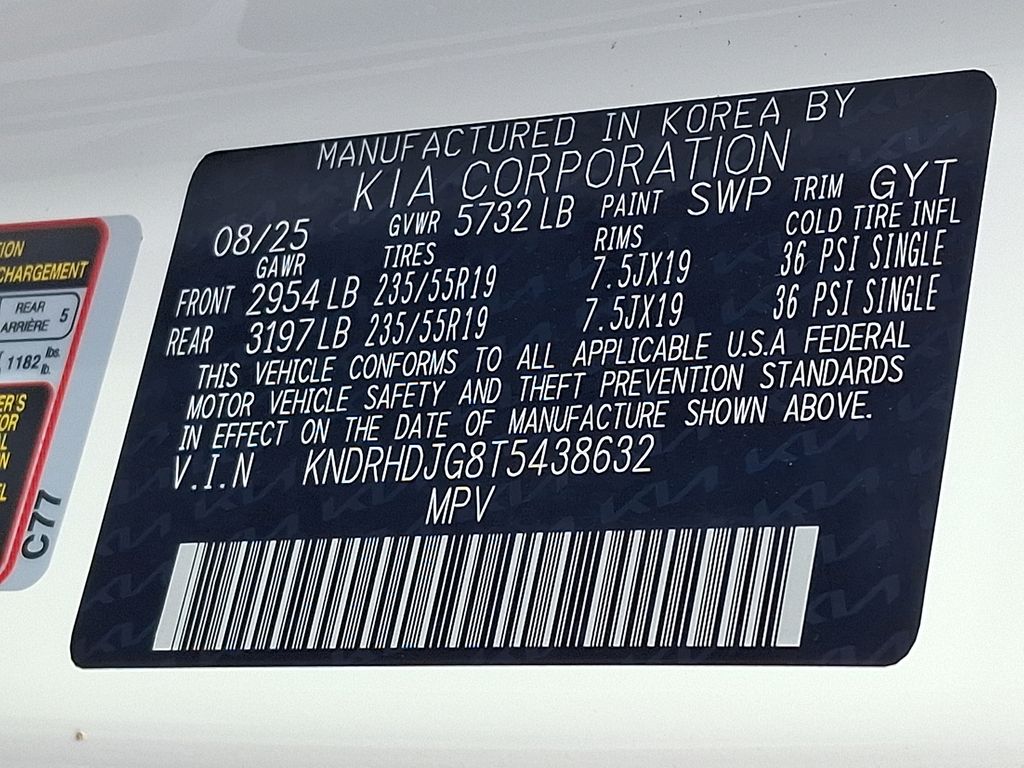 1.6L Turbo GDI 4-Cylinder, 3rd row seats: split-bench, 4-Wheel Disc Brakes, 6 Speakers, ABS brakes, Air Conditioning, Alloy wheels, AM/FM radio: SiriusXM, Apple CarPlay & Android Auto, Auto High-beam Headlights, Auto-dimming Rear-View mirror, Automatic temperature control, Brake assist, Bumpers: body-color, Cargo Net, Carpeted Floor Mats, Delay-off headlights, Driver door bin, Driver vanity mirror, Dual front impact airbags, Dual front side impact airbags, Electronic Stability Control, Emergency communication system: 911 Connect, Exterior Parking Camera Rear, Four wheel independent suspension, Front anti-roll bar, Front Bucket Seats, Front Center Armrest, Front dual zone A/C, Front fog lights, Front reading lights, Fully automatic headlights, Heated door mirrors, Heated Front Bucket Seats, Heated front seats, Illuminated entry, Knee airbag, Leather steering wheel, Low tire pressure warning, Navigation System, Occupant sensing airbag, Outside temperature display, Overhead airbag, Overhead console, Panic alarm, Passenger door bin, Passenger vanity mirror, Power door mirrors, Power driver seat, Power Liftgate, Power passenger seat, Power steering, Power windows, Radio data system, Radio: AM/FM/SiriusXM Audio System, Rear anti-roll bar, Rear reading lights, Rear seat center armrest, Rear side impact airbag, Rear window defroster, Rear window wiper, Remote keyless entry, Security system, Speed control, Speed-sensing steering, Split folding rear seat, Spoiler, Steering wheel mounted audio controls, SynTex Artificial Leather Seat Trim, Tachometer, Telescoping steering wheel, Tilt steering wheel, Traction control, Trip computer, Turn signal indicator mirrors, Variably intermittent wipers, Wheels: 19" x 7.5J Machine-Finished Aero-Alloy, 1.6L Turbo GDI 4-Cylinder.