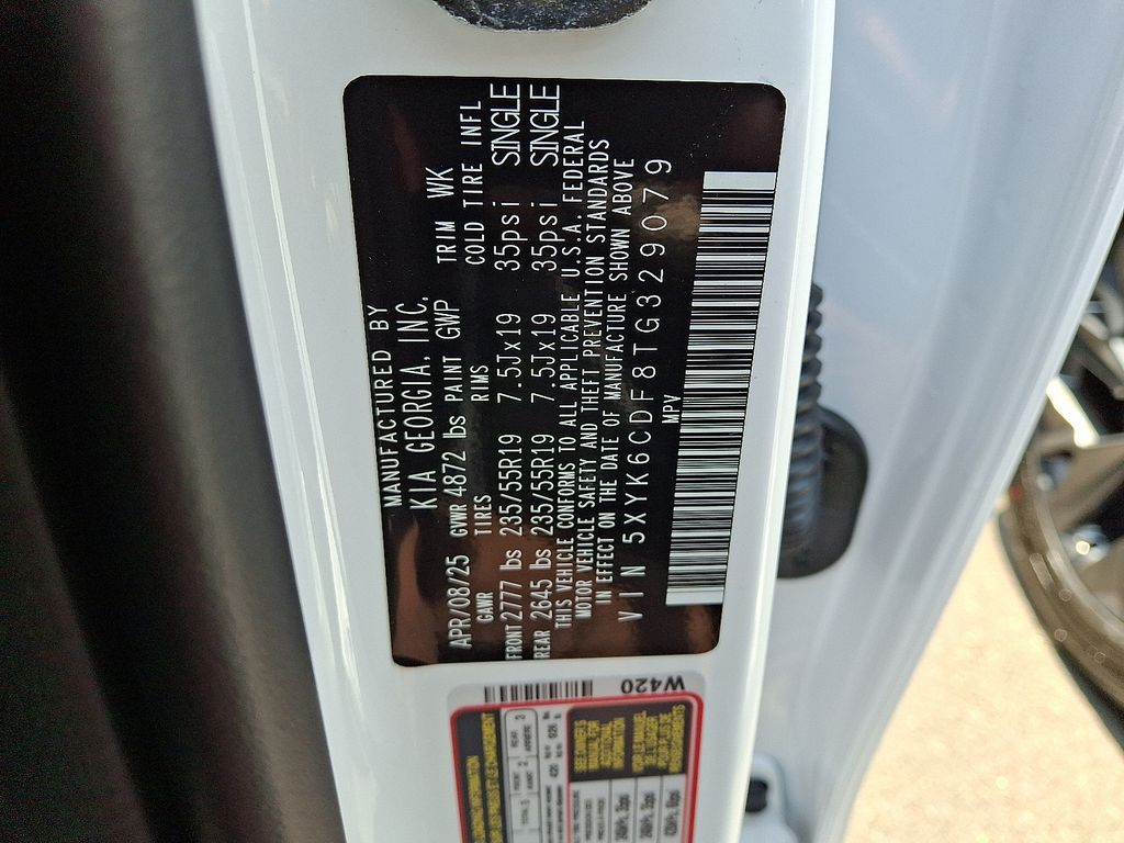 AWD, 12.3-in TFT Cluster, Curve Type, 4-Wheel Disc Brakes, 6 Speakers, ABS brakes, Air Conditioning, Alloy wheels, AM/FM radio, Auto High-beam Headlights, Automatic temperature control, Brake assist, Bumpers: body-color, Cargo Mat with Seatback Protection, Carpeted Floor Mats, Delay-off headlights, Driver door bin, Driver vanity mirror, Dual front impact airbags, Dual front side impact airbags, Electronic Stability Control, Emergency communication system: Kia Connect (includes 1 year free trial), Four wheel independent suspension, Front anti-roll bar, Front Bucket Seats, Front Center Armrest, Front dual zone A/C, Fully automatic headlights, Garage door transmitter, Heated door mirrors, Heated Front Bucket Seats, Heated front seats, Illuminated entry, Leather steering wheel, LED Front Fog Lights, LED Interior Lighting, Low tire pressure warning, Memory Driver Seat and Outside Mirrors, Occupant sensing airbag, Outside temperature display, Overhead airbag, Overhead console, Panic alarm, Panoramic Sunroof, Parking Collision Avoidance-Assist - Reverse, Parking Distance Warning, Passenger door bin, Passenger vanity mirror, Power door mirrors, Power driver seat, Power steering, Power windows, Power-Folding Outside Mirrors, Radio: AM/FM/HD Audio System, Radio: AM/FM/HD Premium Audio System, Rain sensing wipers, Rear anti-roll bar, Rear seat center armrest, Rear side impact airbag, Rear window defroster, Rear window wiper, Remote keyless entry, Security system, Smart Power Liftgate, Speed control, Speed-sensing steering, Split folding rear seat, Spoiler, Steering wheel mounted audio controls, Surround View Monitor with Blind Spot View Monitor, Syntex Premium Leatherette Seat Trim, Tachometer, Telescoping steering wheel, Tilt steering wheel, Traction control, Trip computer, Turn signal indicator mirrors, Variably intermittent wipers, Wheel Locks, Wheels: 19" x 7.5J Gloss Black Alloy, X-Line Premium Package, X-Line Technology Package, AWD.