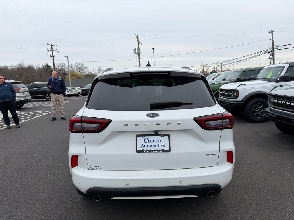 The exterior of the Escape ST-Line exudes a bold and sporty presence, with its striking White paint and sleek, aerodynamic design. Step inside and you'll be greeted by a well-appointed cabin that combines premium materials and advanced technology. The Vinyl/Cloth Front Sport Contour Bucket Seats provide exceptional comfort and support, while the Heated Steering Wheel and Heated Front Seats ensure you stay cozy in any weather.